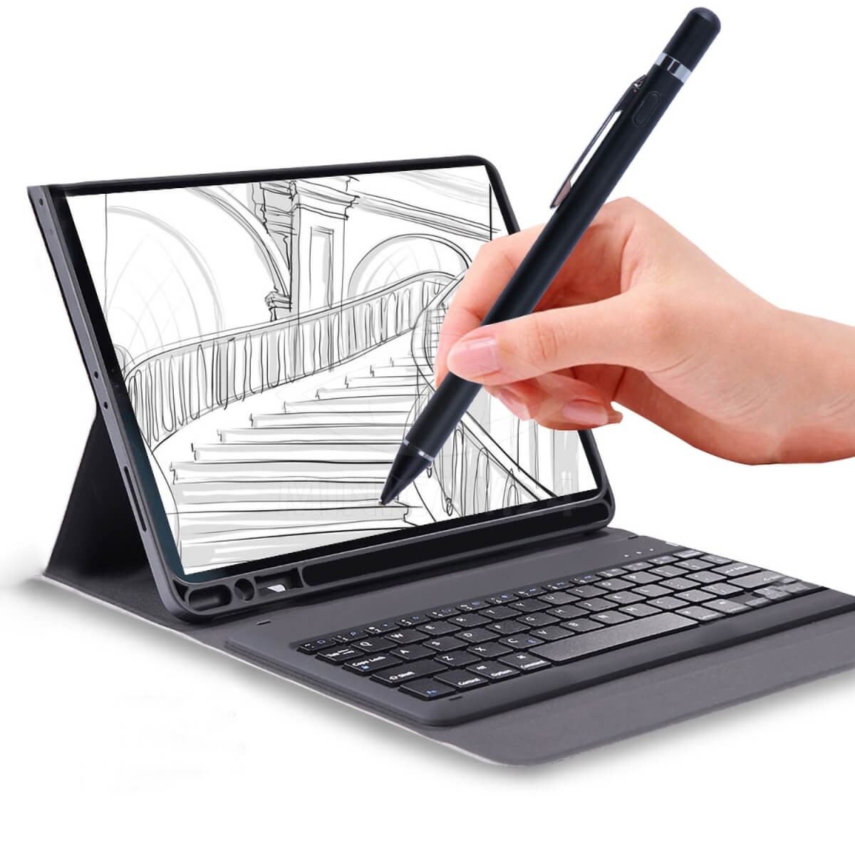 Емкостной стилус Stylus K825 с кнопкой для любого смартфона, планшета – полезное устройство для художника, при помощи которого можно рисовать прямо на экране устройства. Изделие будет полезно для рисования в домашних условиях, на учебе или на улице. Универсальный стилус для экрана имеет медное перо, позволяющее прорисовывать тонкие линии. Перо может быть заменено в зависимости от требуемой толщины и мягкости линий. Ручка стилус для айпада или для графического планшета любого производства удобно управляется кнопкой на корпусе. Электронный стилус для рисования питается от встроенного аккумулятора, заряда которого хватает на 10 часов непрерывного использования. Домашний стилус быстро синхронизируется с устройством беспроводным способом.
